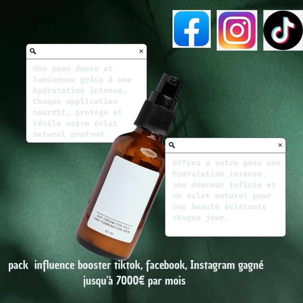 Le pack influnce BOOSTER est ton arme secréte pour percer sur TIKTOK ET Fecebook et instagram. il regroupe des stratégies clairs des astuces concrètes et des outils efficaces pour attire engager et fidéliser ton audience.