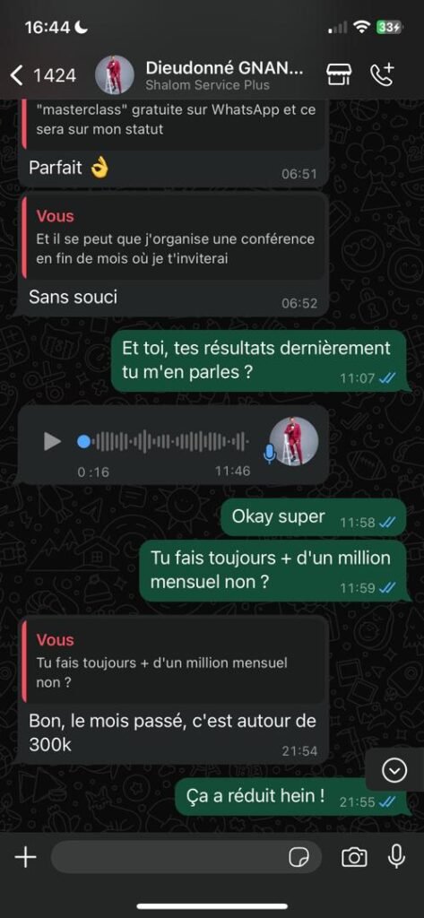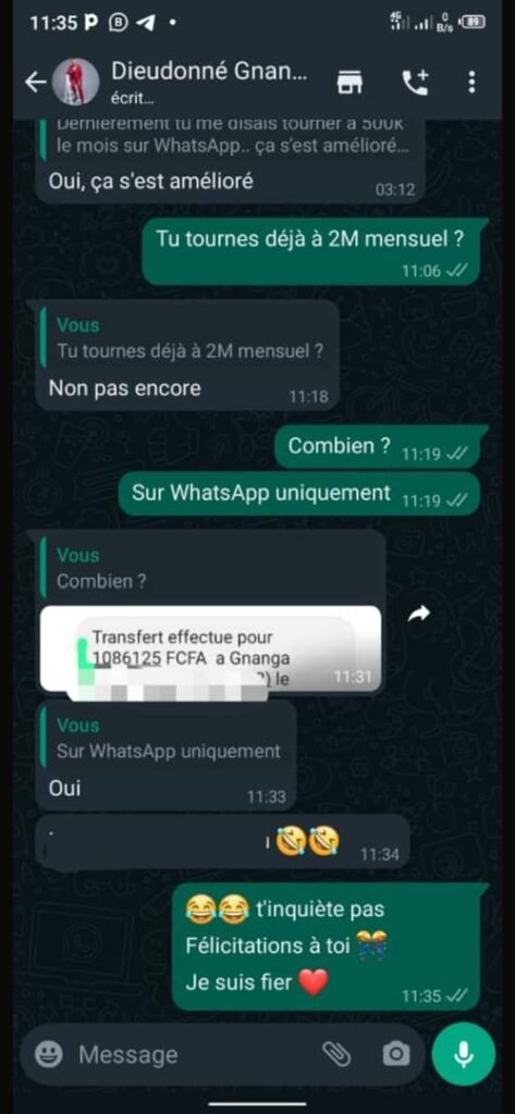 Dieudonné fait entre 500 000 et 1 000 000 FCFA par mois avec WhatsApp !