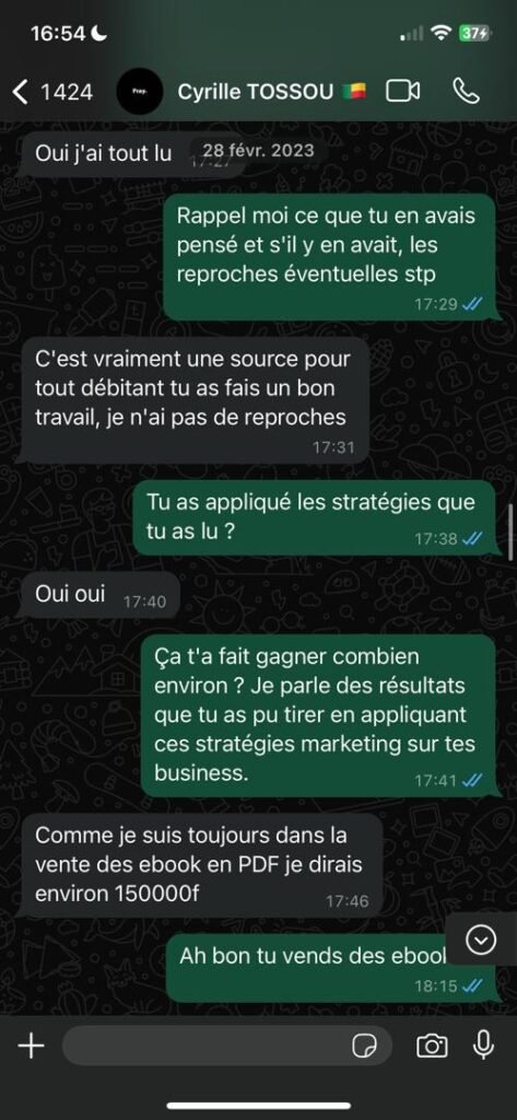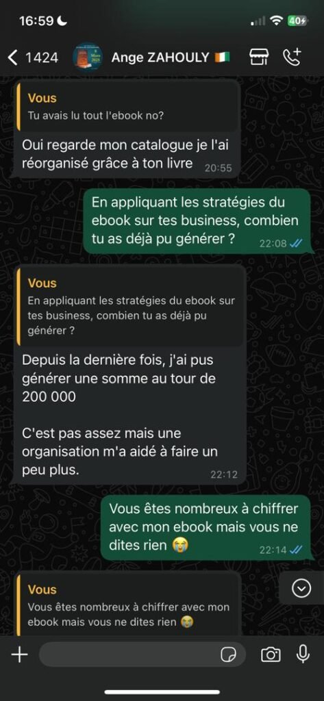 Cyrille a généré plus de 350 000 FCFA avec son WhatsApp en vendant rien que des ebooks !