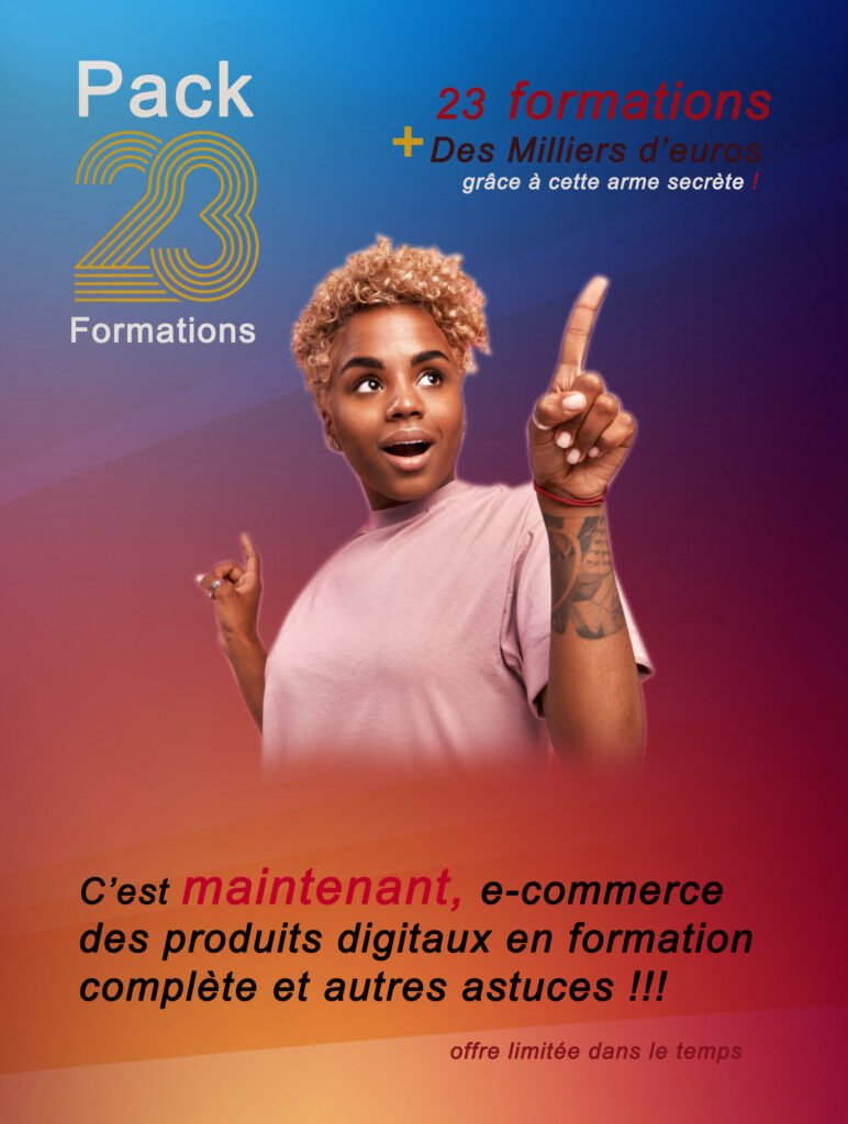 Découvrez le bonus exclusif qui va révolutionner votre approche du e-commerce de produits digitaux ! En plus du pack de 23 formations déjà riche en contenu, vous bénéficiez aussi d’une formation complète sur le e-commerce des produits digitaux. Cette formation est la clé pour commencer à vendre efficacement le produit digital que vous venez d’acquérir avec droit de revente.